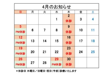 4月の営業のお知らせです。